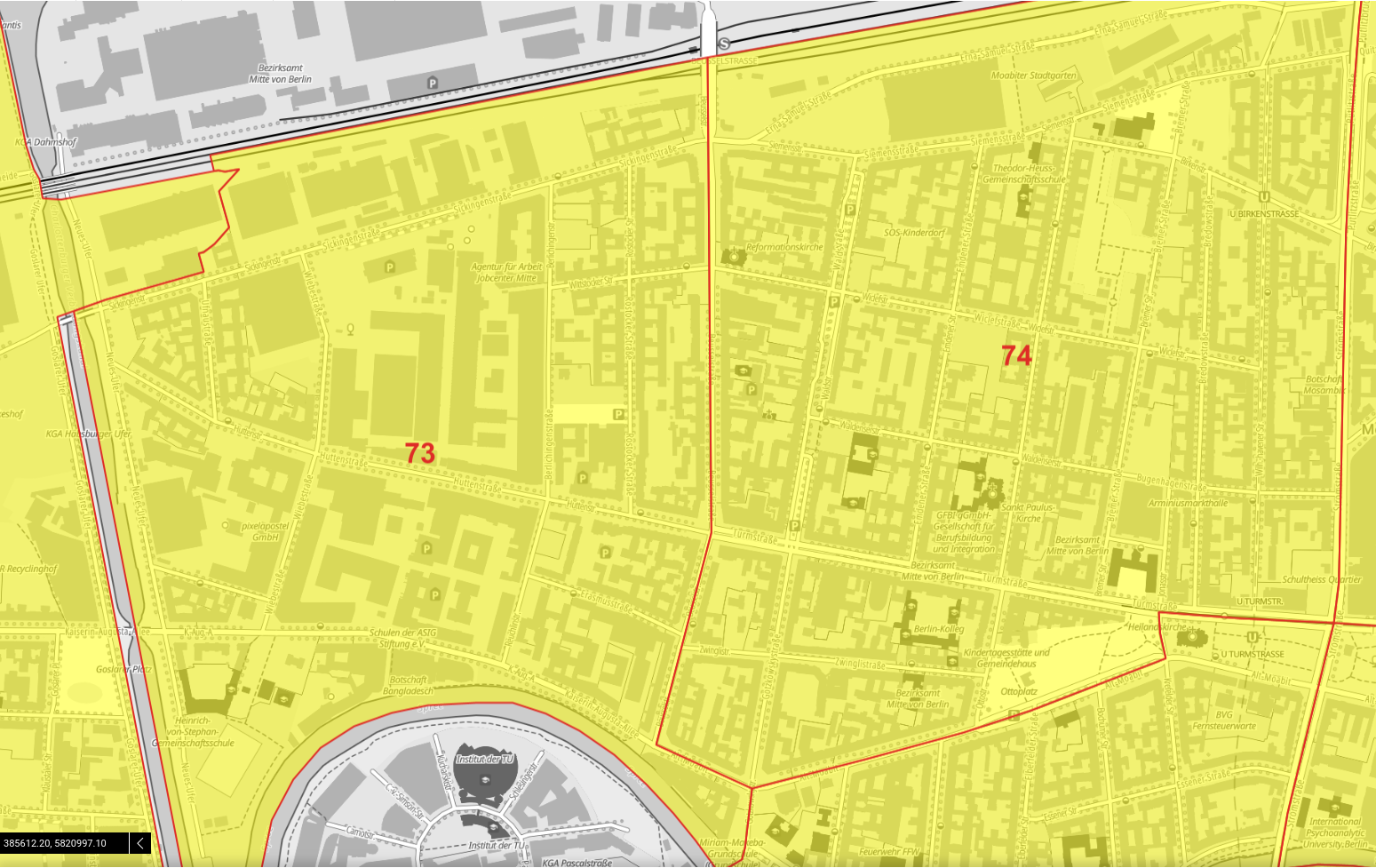 A100 Abfahrt Beusselstraße, rechts 350 Meter Beusselstraße, dann zum Parken links in die Wiclefstraße (Zone 74) oder rechts in die Witstocker Straße (Zone 73) abbiegen.