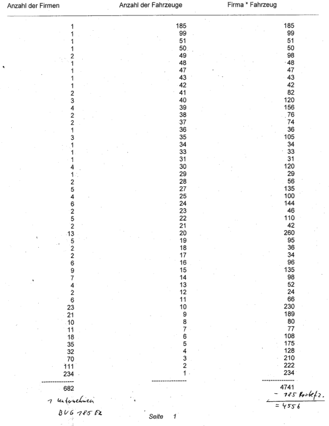 Ende August 2021 gab es in Berlin 6287 Taxis und 4741 Mietwagen mit Fahrer. Dazu kommt eine unbekannte Zahl an Mietwagen aus den Umland gemeinden. Wir müssen deshalb von einer annähernd gleichen Anzahl von Taxis und Mietwagen ausgehen.